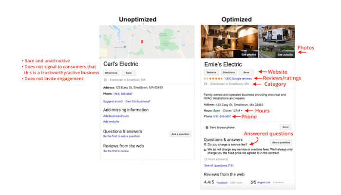 Let’s take a look at what an optimized GMB profile looks like: